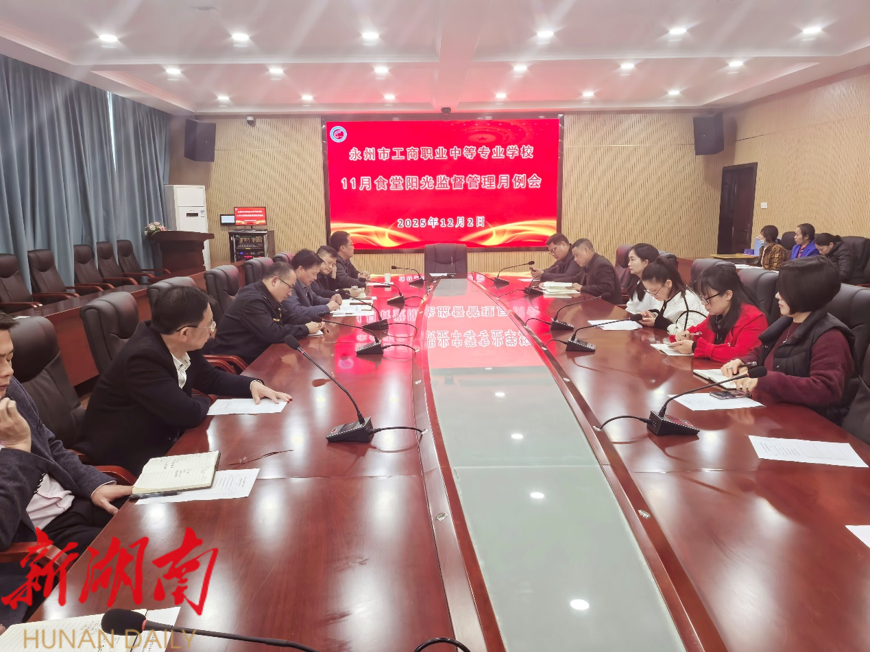 湖南日报·新湖南客户端12月3日讯(通讯员 魏华 唐艳波)为筑牢校园食品安全防线,搭建多方协同监督桥梁,提升餐饮质量,12月2日10点,永州市工商职业中专组织召开11月份食堂阳光管理监督月例会。零陵区教育局副局长王斌、职成股股长彭新强,学校校长蒋崇献、分管副校长黄志军,市场监督管理局人员,区政协委员,食堂管理人员,永州市金桥劳务派遣有限公司、沃源农林食材配送有限公司代表、家长委员代表参会。