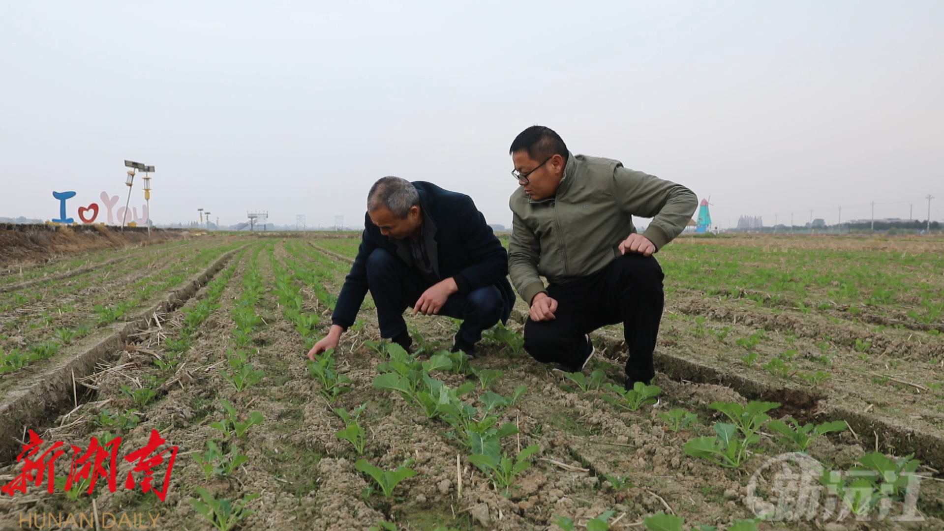 在沅江市琼湖街道保民现代谷物种植专业合作社的四千亩油菜基地里,绿油油的油菜苗在风中摇曳。连片的油菜地里,部分晚播地块的幼苗明显身材纤弱,市农技人员蹲下身,随手拿起一株油菜苗查看根系,又翻看叶片仔细观察,针对即将到来的降温天气,他向合作社负责人王正超提出了具体管理方案。