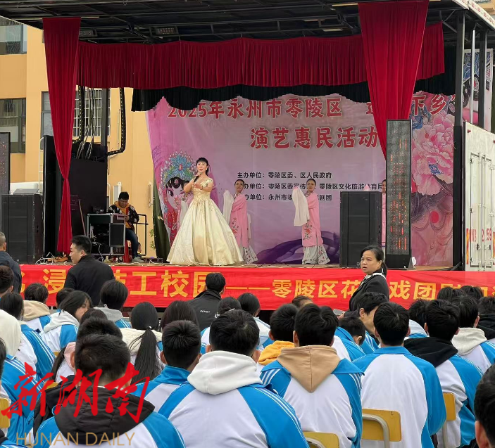 湖南日报·新湖南客户端12月3日讯(通讯员 眭红玲)12月3日,永州市第二技工学校举办“传承非物质文化遗产,浸润技工校园”公益演出活动。永州市零陵花鼓戏剧团走进校园,为师生带来经典剧目,呈现了一场兼具艺术感染与文化传承意义的表演,搭建起非物质文化遗产与技工教育融合的桥梁。