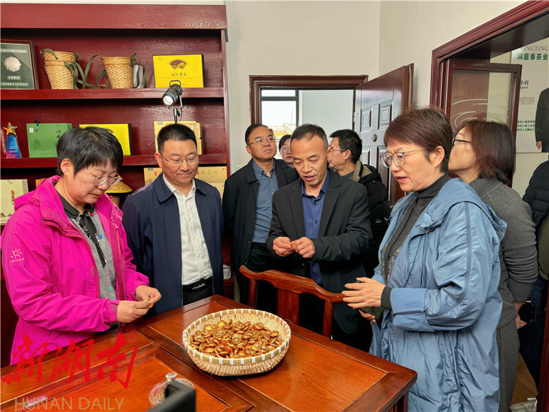 在黄沙街茶叶示范有限公司,考察团先后参观了研学教室、直播间、茶文化展区、加工厂及体验馆,近距离感受我县茶叶产业的发展脉络与文化底蕴,并通过观看专题片、听取情况介绍、开展自由交流等形式,详细了解洞庭春茶产业的发展历程、品牌建设、农文旅融合发展成效等情况。在张谷英村,丁燕英一行沉浸式领略传统古村落的建筑风貌、民俗文化,深入了解岳阳县在保护古村落资源、推动文旅融合、助力乡村振兴等方面的实践经验。