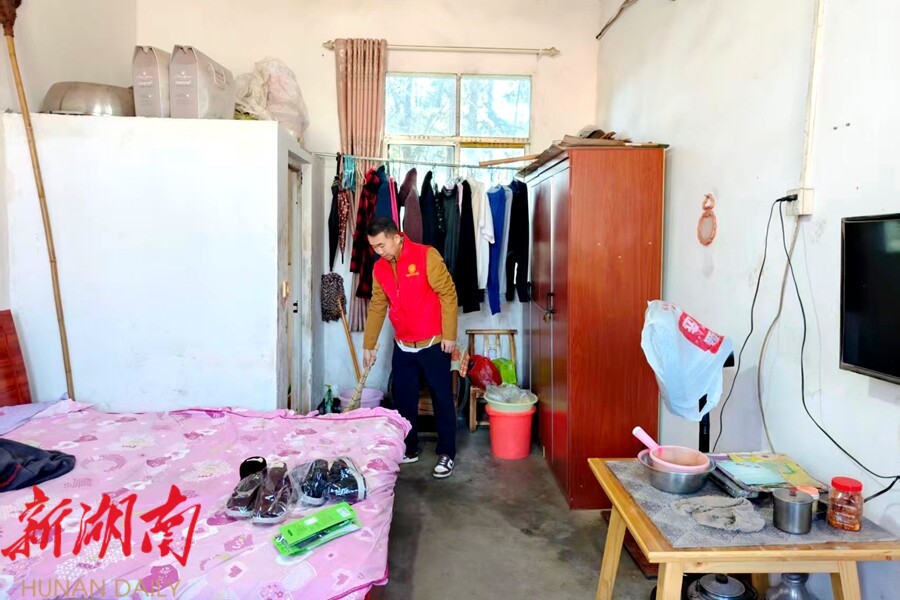 选调生为敬老院老人打扫房间卫生