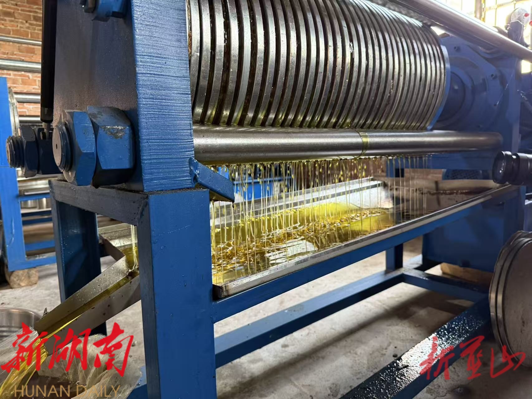 据榨油坊负责人李勇介绍,这两年来,油坊在延续传统物理压榨精髓的基础上,积极引入低温冷榨与智能数控技术,精准控制压榨温度与压力,最大程度保留茶油活性成分与天然风味,确保每一滴油都纯净透亮、符合食品安全标准。科技赋能不仅提升了出油率和产品品质,也让传统榨油走向标准化、洁净化生产。
