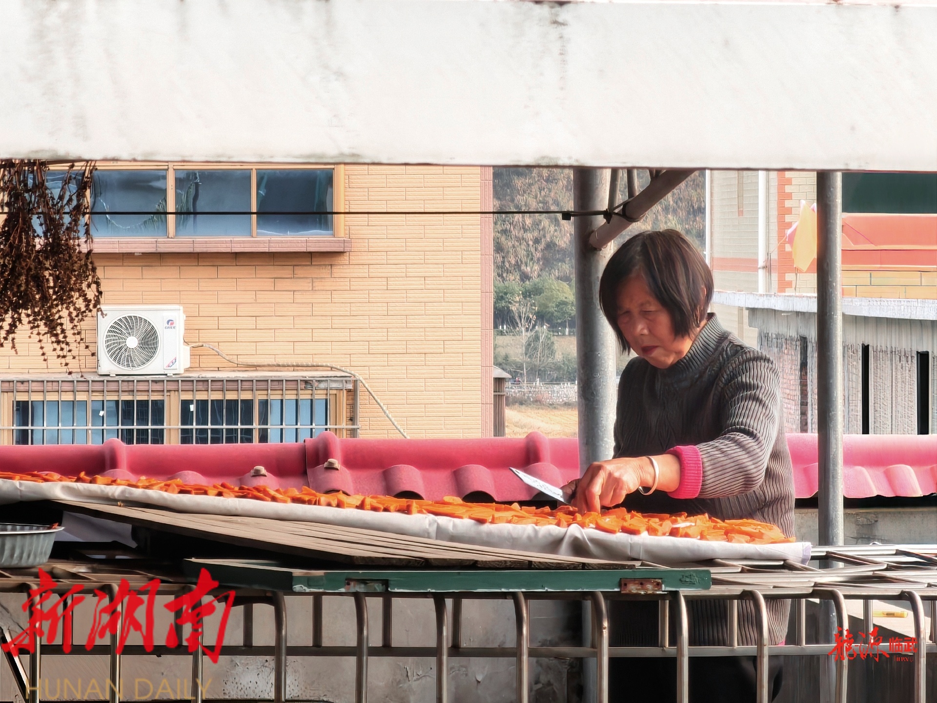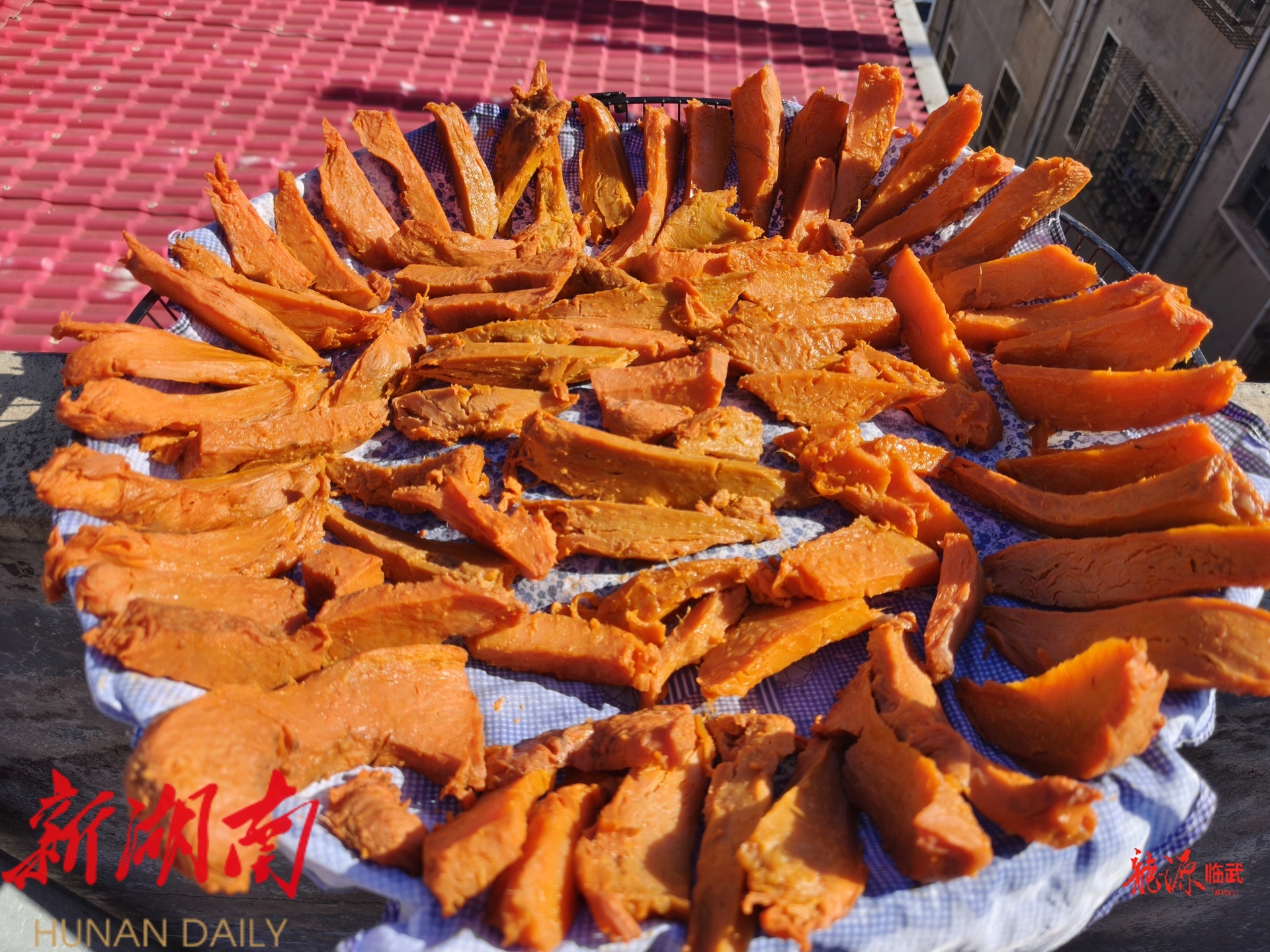 连日来,冬日暖阳浴大地 “爬屋脊”,临武县武水镇刘家村的天台上温情漾漾,阿婆和婶子们接住阳光的馈赠,刀起片落间,这边块块竹匾,那边面面扇罩,都成为红薯栖居、甜蜜嬗变的好地方……看着透亮薄片,静待筋道嚼劲,怎一个甜了个甜晾晒忙?