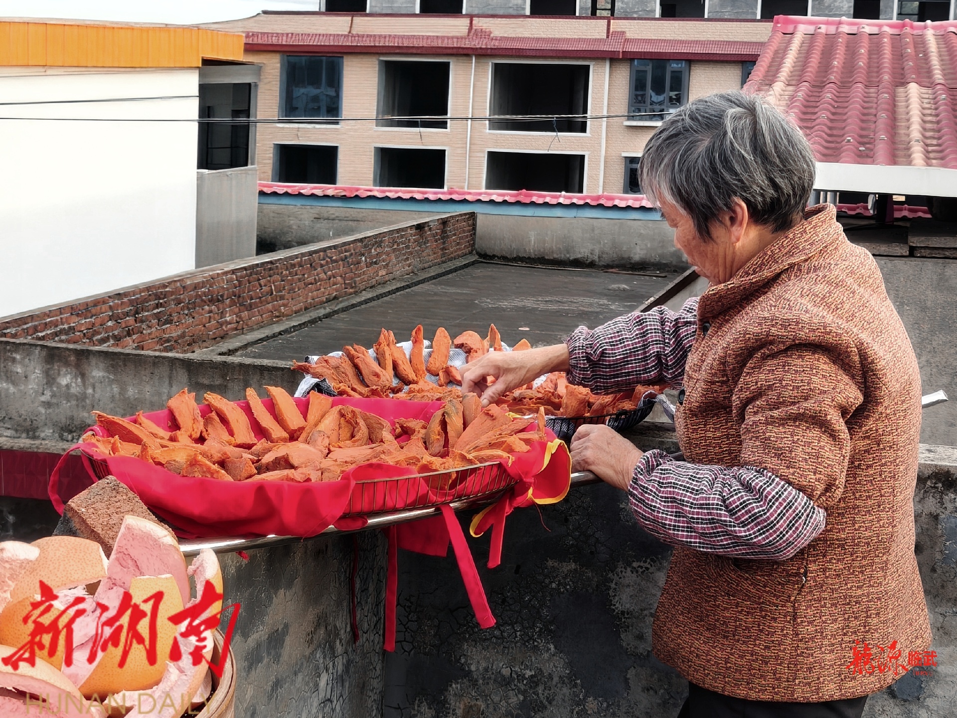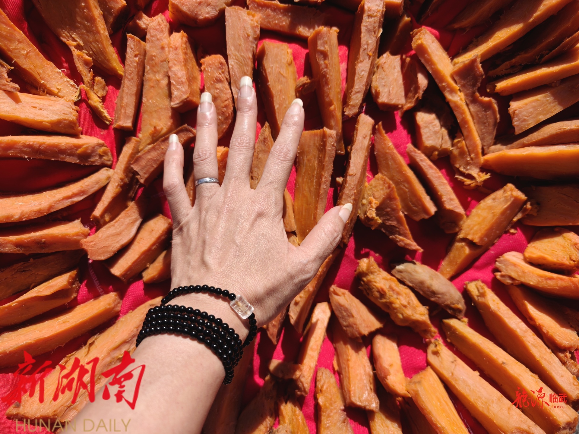 “清洗、去皮、蒸煮、切片……忙乎几天了,终于晒上了,这太阳真好啊,晒得越透,我的红薯干就越甜。”天台之上,婶子边切片边喃喃自语。