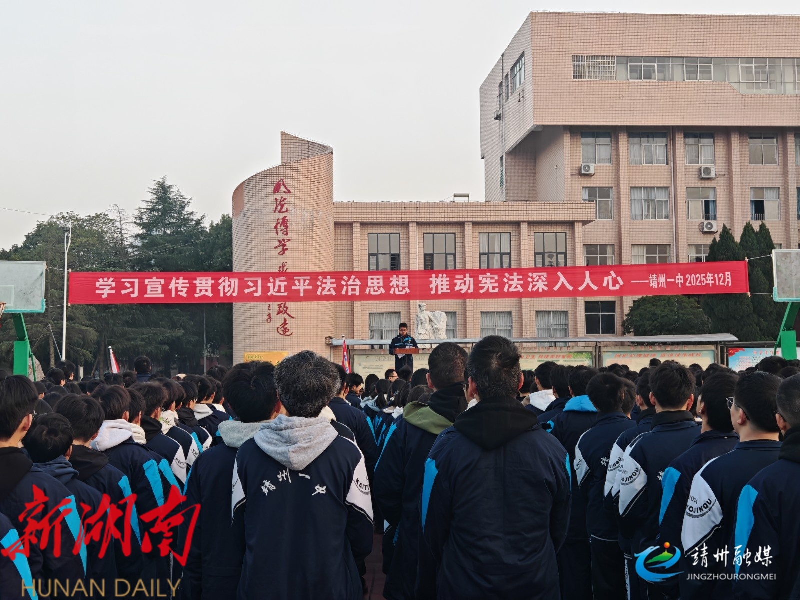 12月3日,靖州一中举行宪法日主题宣传活动,学生代表围绕宪法意义、青少年如何维护宪法权威等内容进行发言,并结合校园生活解读法治精神,引导同学们增强宪法意识。随后,师生共同学习宪法核心内容。该校后续还将通过主题班会、知识竞赛等形式持续深化宪法学习,助力青少年扣好“法治第一粒扣子”。