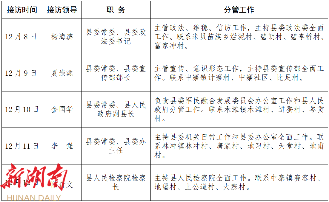 为进一步畅通信访渠道,方便群众依法及时就地反映、解决问题,现将2025年12月第二周新晃侗族自治县县级领导干部公开接访安排公告如下。