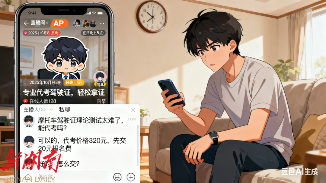 2025年10月8日晚,向某在某视频APP内刷到可帮忙代考驾驶证的直播间,向某正需考一个摩托车驾驶证,但理论测试难以通过,便私聊“主播”了解情况,知晓代考摩托车驾驶证价格为320元,报名费为20元后,向某立即缴纳了20元报名费,并按对方要求下载了能开启屏幕共享功能的APP并配合提交各类资料。