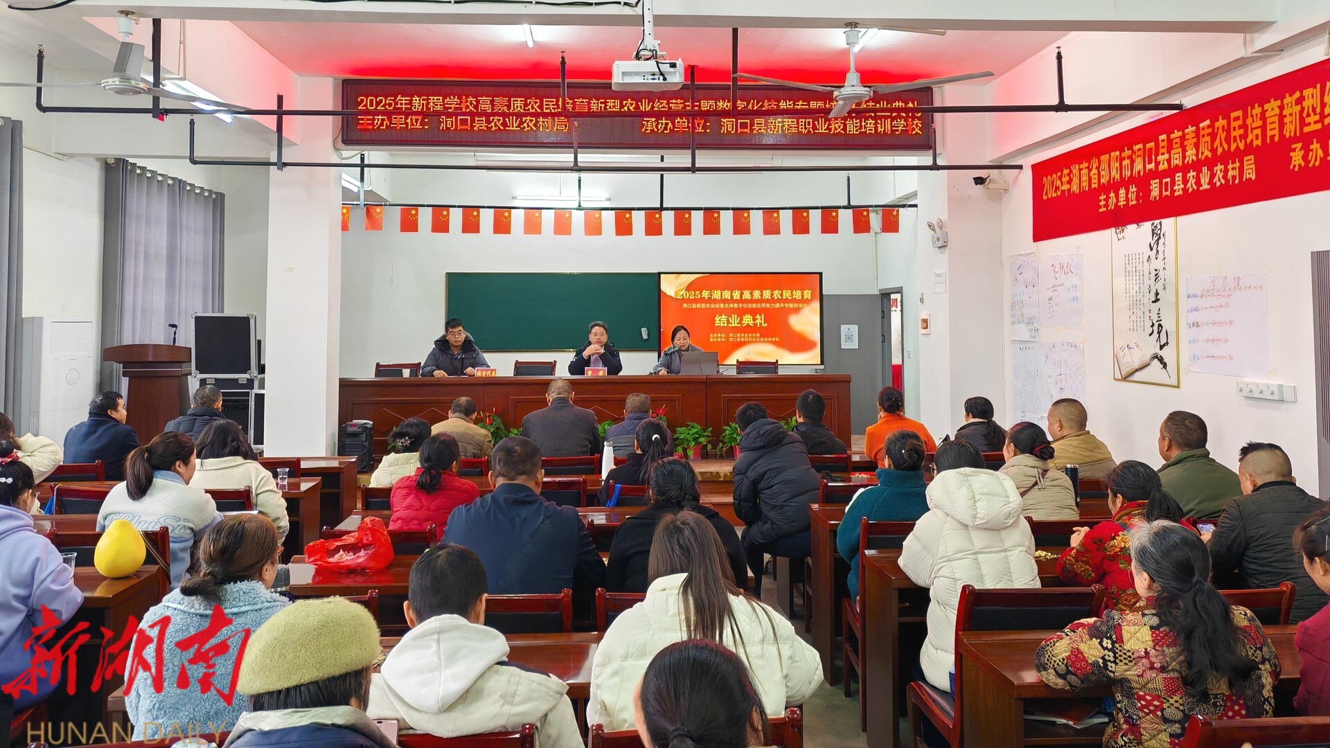 洞口融媒12月4日讯 (记者:胡涛) 12月4日,洞口县2025年高素质农民培育新型农业经营主体数字化技能应用能力专题培训班圆满结束。本次培训由县农业农村局主办、县新程职业技能培训学校承办,来自全县各乡镇的50名学员顺利结业,携数字化“新农具”回归生产一线,为雪峰山脚下的现代农业发展注入新动能。