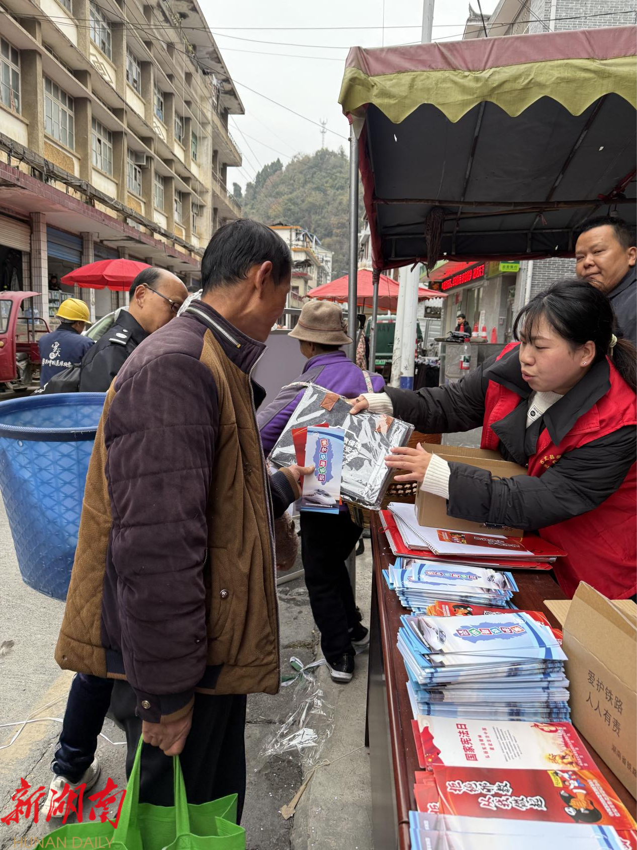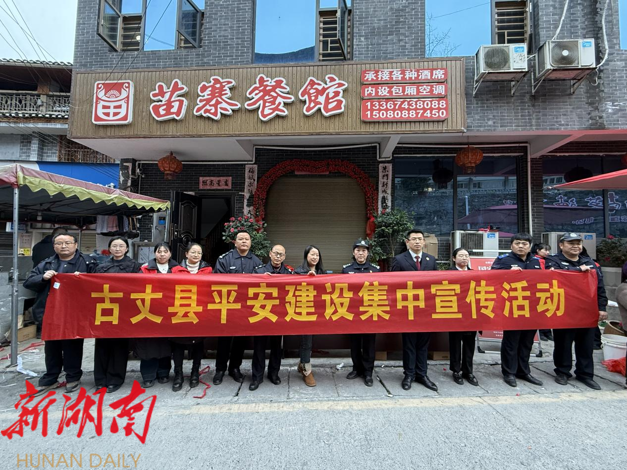 新湖南客户端12月4日讯(通讯员 陈瑞)在第十二个“12·4”国家宪法日暨全国法制宣传日来临之际,为深入践行习近平法治思想,大力弘扬宪法精神,以法治力量赋能基层治理、护航平安古丈建设,12月4日上午,古丈县委政法委联合县委宣传部(县文旅广电局)、县人民法院、县人民检察院、县公安局、县司法局及默戎镇人民政府,聚焦群众法治需求,深入默戎镇集市与墨戎苗寨景区,开展主题鲜明、形式多元的平安建设集中宣传活动,推动法治宣传教育从“灌输式”向“互动式”转变、从“会场”向“现场”延伸,让宪法精神与法治理念在基层落地生根、浸润民心。