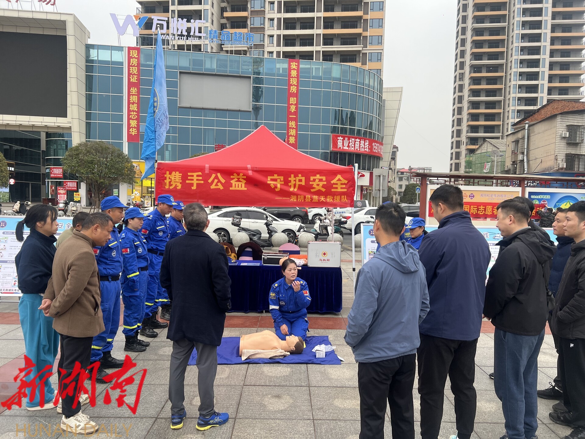活动创新采用“宣传展示+互动体验+便民服务”三维融合模式,精准对接群众需求,推动志愿服务深入基层、贴近民心。现场各志愿团队纷纷亮出特色服务,吸引众多市民驻足参与。湘阴县蓝天救援队开展应急救援演练,志愿者操作专业装备、演示急救技能,引来市民积极学习与咨询;湘阴县生态环保志愿者协会开设“垃圾分类小课堂”,通过模型演示与趣味问答,生动普及环保知识;湘阴爱心志愿者团队提供的义剪、血压测量服务前排起长队,志愿者们细心为老人理发、检查,传递质朴关怀;湘阴微盟社会服务中心设置插花、绘画互动区,吸引不少家庭参与创作,在艺术中感受公益温度;湘阴反电鱼志愿者协会则通过案例讲解、资料发放等形式,倡导公众共同守护湘阴水域生态。