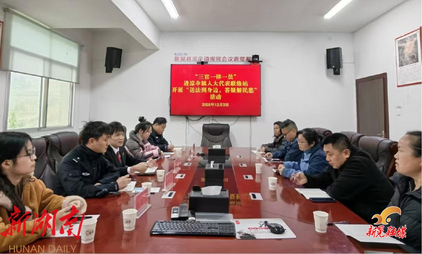 新晃融媒12月6日讯(通讯员:贾萧蓉)“上门女婿户籍不迁回原户,能不能参与父母所在村的土地二轮延包?”“整户消亡后,青苗和征拆补偿该归谁?”近日,凉伞镇人大代表联络站内热闹非凡,参加活动的代表带着群众反映强烈的法律难题,与“三官一律一员”(法官、警官、检察官、公职律师、司法员)面对面交流,一场“送法到身边,答疑解民愁”活动在这里温情开展。