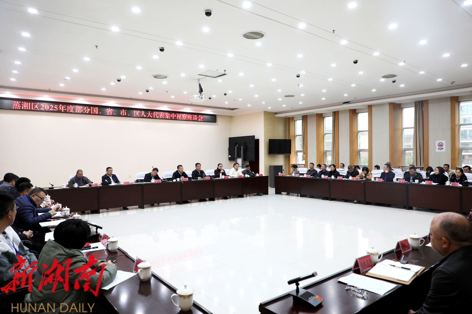座谈会上,代表们结合视察情况踊跃建言,纷纷为蒸湘区经济社会发展所取得的喜人成绩点赞,并表示,将结合本次视察了解的情况,发挥桥梁纽带作用,通过联系选民、走访调研等形式向广大人民群众宣传好蒸湘各方面的发展成效,广泛听取和反映社情民意,积极为民发声、履职尽责,提振全区人民加快高质量发展的信心和决心。