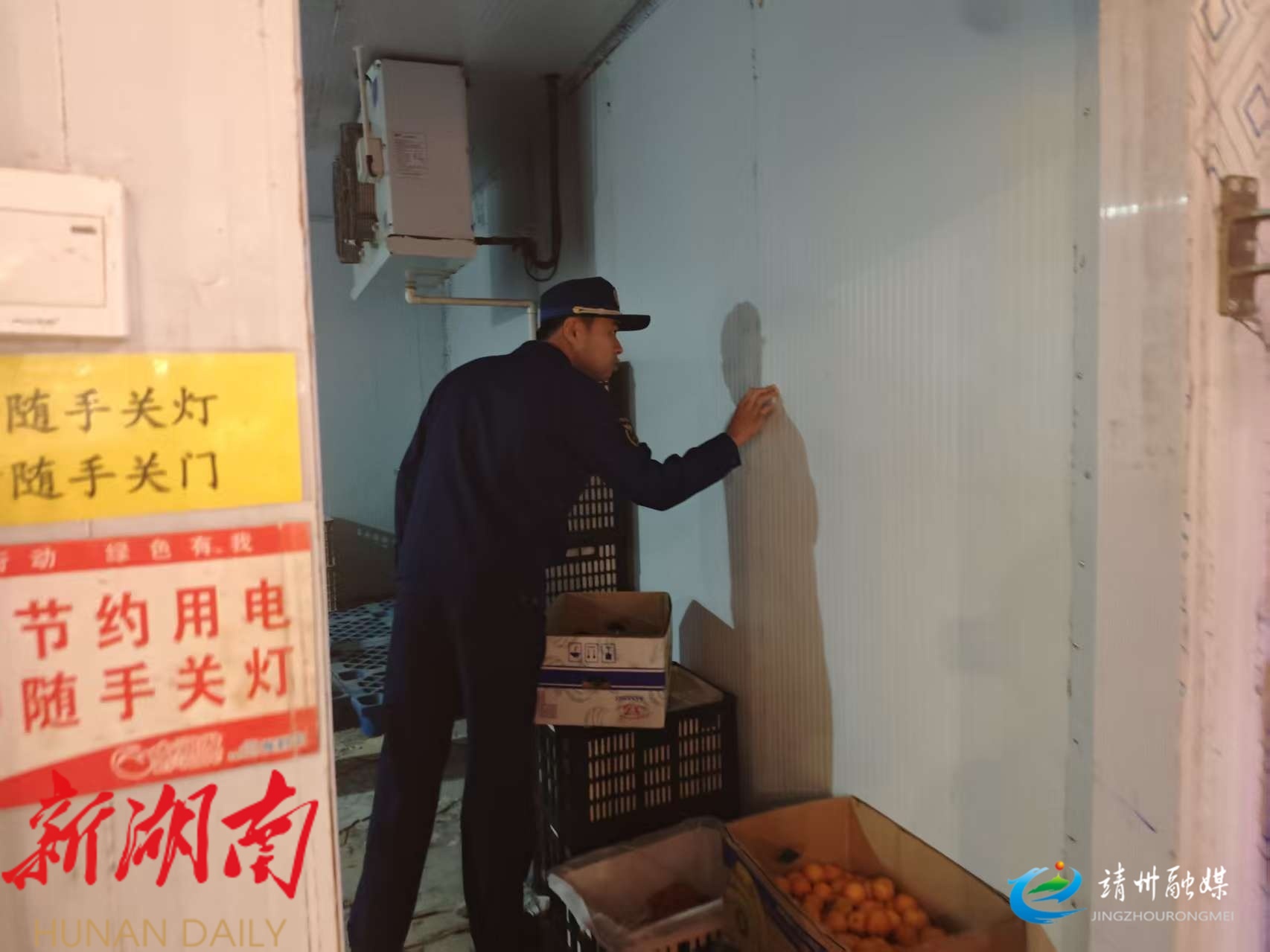 消防监督员对冷库保温材料进行检查(龙鑫 供图)