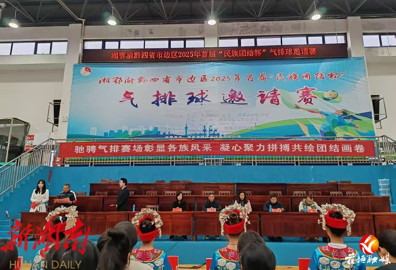 湖南日报·新湖南客户端12月6日讯(通讯员 覃文湘) 12月6日上午,湘鄂渝黔四省市边区首届“民族团结杯”气排球邀请赛在湖南省花垣县全民健身中心拉开帷幕。吸引了来自湖南、湖北、重庆、贵州四省市边区30支队伍参赛(其中男子13支、女子17支),运动员们以球会友、以赛传情,在竞技和交流中奏响民族团结的乐章。