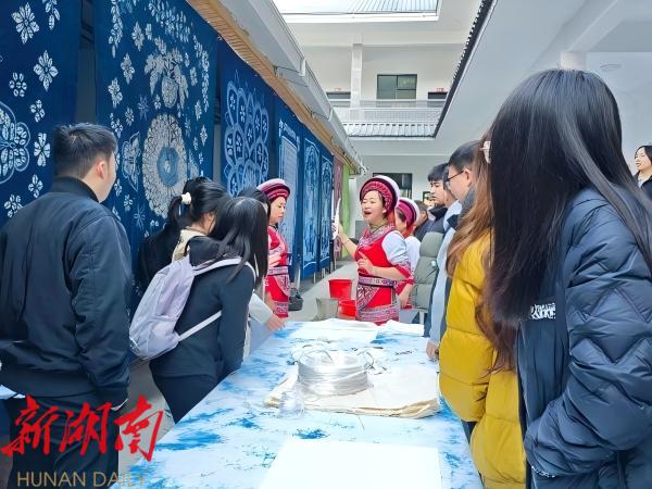 调研首站聚焦乡村文化振兴。选调生们走进白族文化体验馆,“一苦二甜三回味”的白族三道茶,让选调生们体悟到“先苦后甜”的奋斗哲学与“回味无穷”的治理智慧。扎染工坊内,非遗传承人现场讲解扎染技艺,并示范了从图案设计、织物捆扎到靛蓝浸染的过程。选调生们边学边做,在针线穿梭与染料浸润的实践中,深刻领会“青出于蓝”的匠心传承,深刻认识到文化传承对凝聚乡村精神、激活内生动力的重要意义。