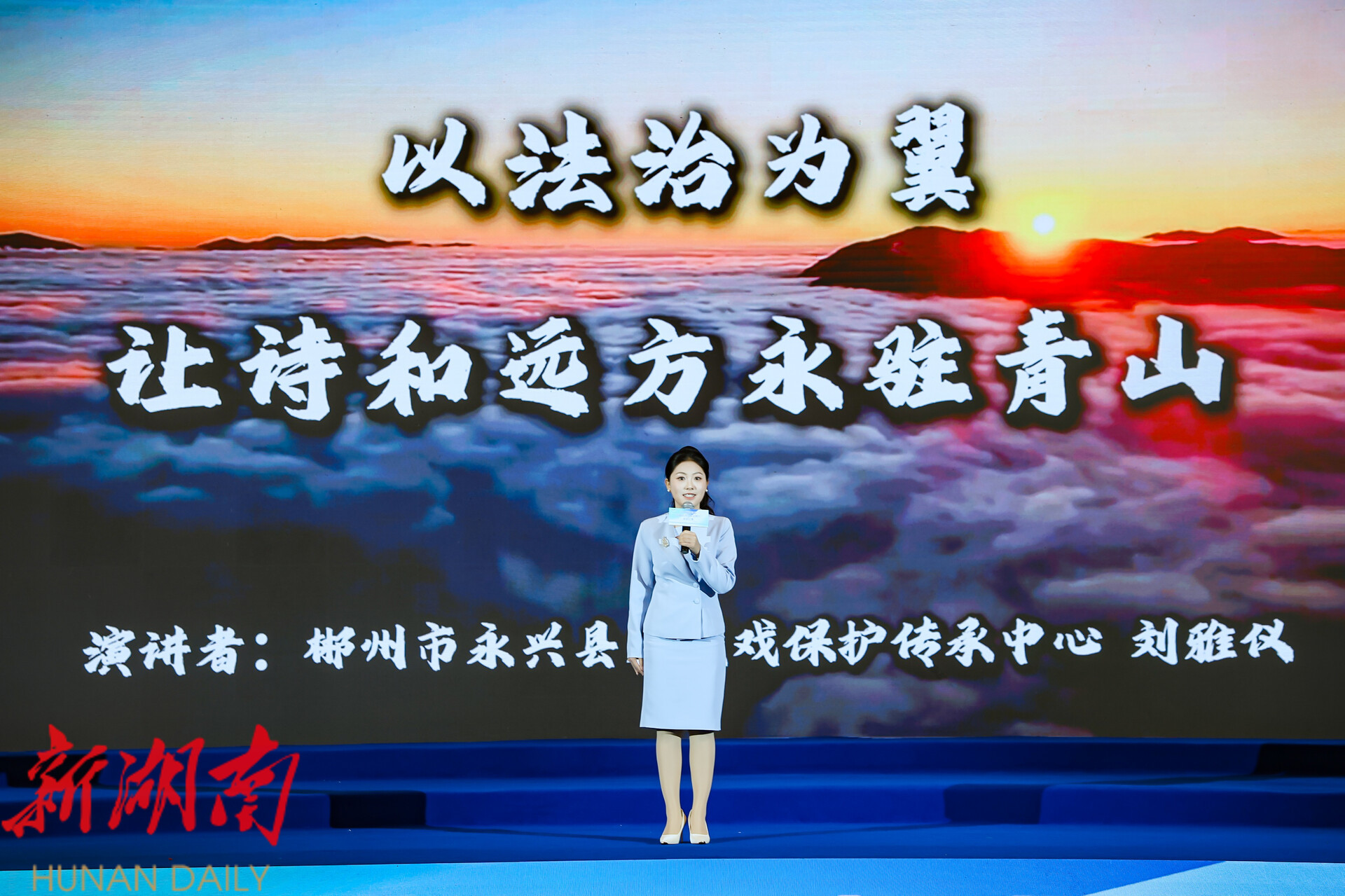决赛现场,永兴县文旅广体局选送的刘雅仪,以鲜活案例、真挚情感围绕“法治与文旅融合”主题演讲,深刻阐释法治对文旅高质量发展的支撑作用,最终从28名选手中脱颖而出,获演讲比赛三等奖。
