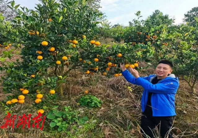 在大庆坪乡唐丰农业橙园基地,果农们忙着采摘、分拣、装车,一派繁忙景象。“基地共有橙树200多亩,今年60多亩丰产,预计亩产3000斤、总产量约20万斤、收入近30万元。”基地负责人唐辉龙介绍,2018年他返乡流转200多亩荒山,带领乡亲发展冰糖橙种植。