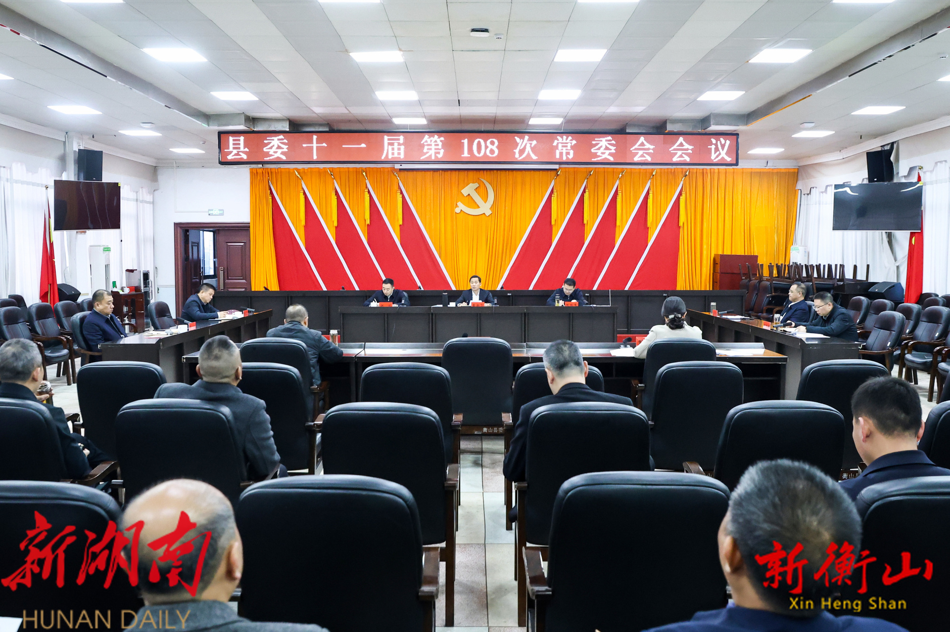 新衡山客户端12月8日讯(记者:刘永欢 周彭斌)12月8日,衡阳市政协副主席、衡山县委书记戴新贤主持召开县委十一届第108次常委会会议,传达学习贯彻习近平总书记近期重要讲话和重要指示精神以及11月28日中共中央政治局会议精神;传达学习贯彻省委十二届九次全体会议精神。