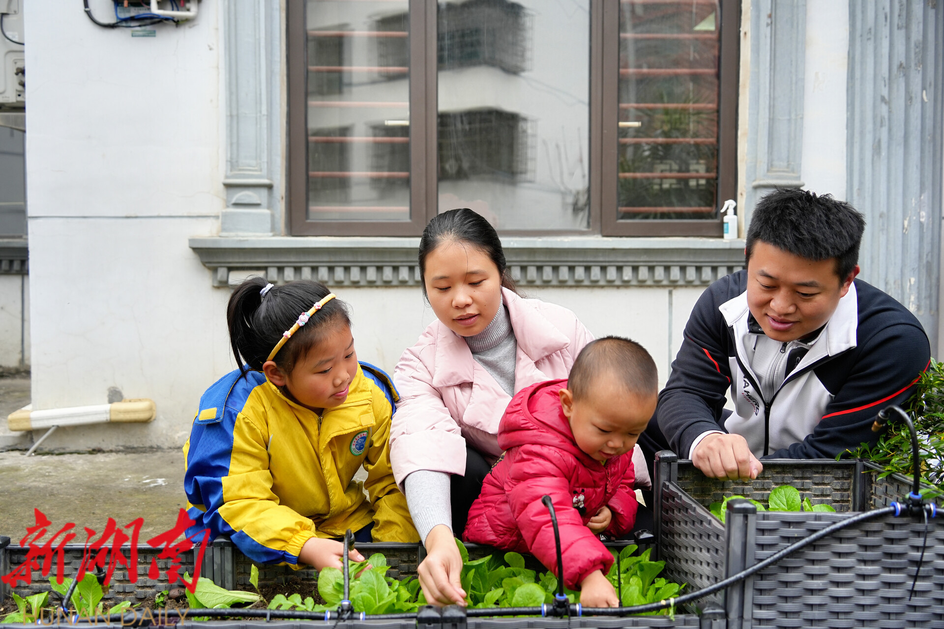 走进谢甜甜家的小院,绿色低碳的细节俯拾皆是。院角的竹筐整齐码放着分类好的废旧纸箱,窗台上的绿植栽种在创意改造的饮料瓶花盆中,墙壁上悬挂着女儿用鞋盒自制的收纳袋。院子里,谢甜甜正带着女儿投喂小鸡;屋内,一家人围坐在一起,用鞋盒制作收纳盒,谢甜甜在黑板上书写低碳知识,手把手教女儿学习环保小妙招,温馨和睦的氛围萦绕全屋。