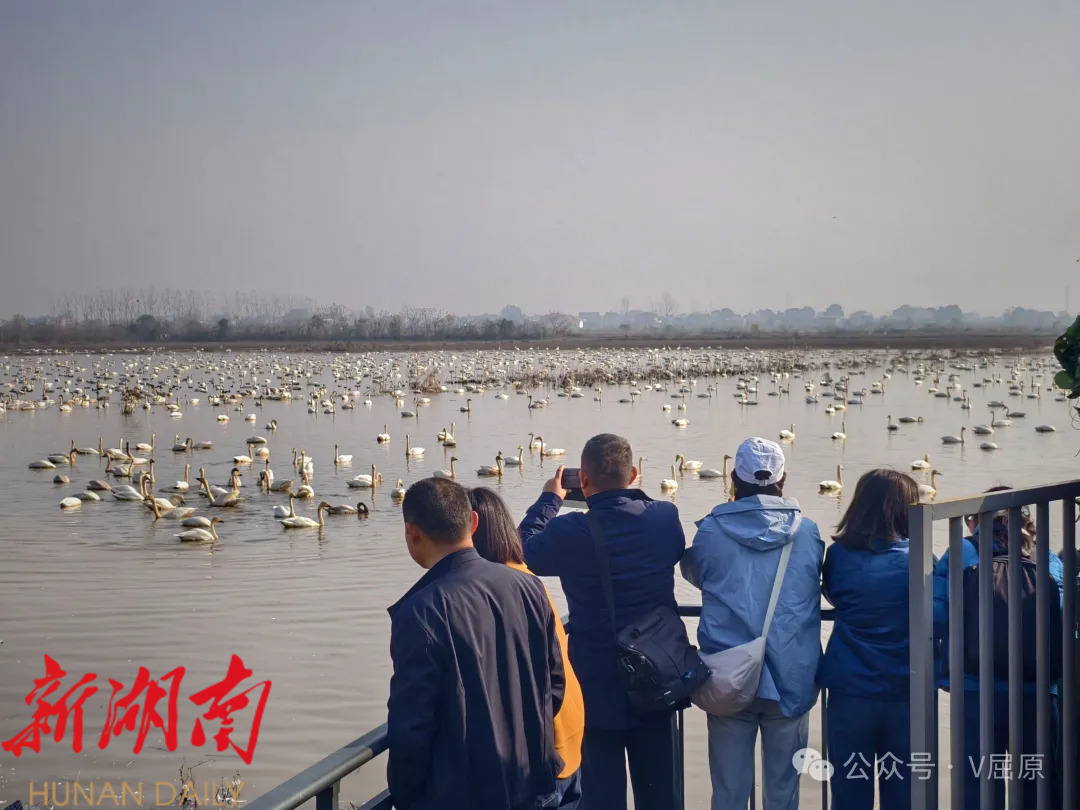 湖南日报·新湖南客户端12月8日讯(通讯员:姜瑶 周洋) 屈原管理区东古湖鸟类栖息湿地公园,近来被一群“国际大腕”包场了!谁?西伯利亚超模天团——小天鹅本鹅!超万只规模的小天鹅,从天寒地冻的老家一路“打飞的”空降,就为打卡咱屈原管理区的“暖冬湖景房”!