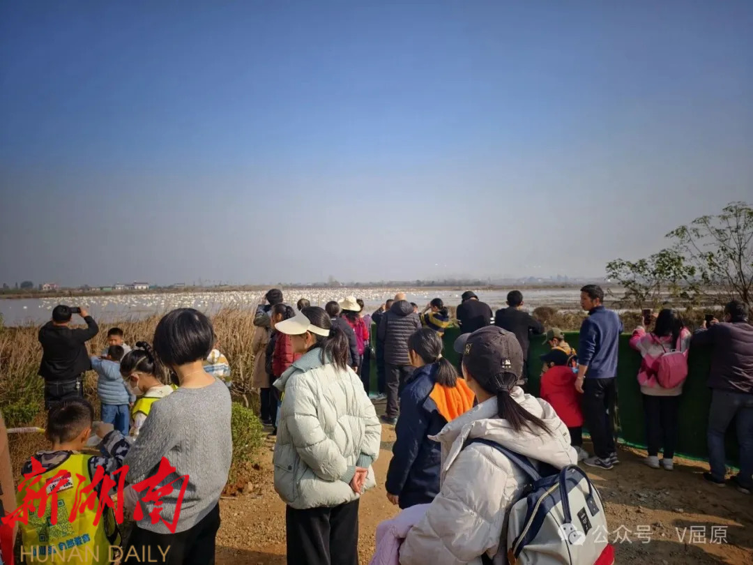 湖面之上,“鹅”声鼎沸 ,观鸟湖畔,人潮如织——为抢占一个“鹅瞰C位”,观鸟爱好者们摩肩接踵,“长枪短炮”(相机、手机、望远镜)架设如林。“哇!飞了飞了!”“那边!那边更多!”“快拍快拍!”热度直逼顶流明星见面会。这群“鹅星”的档期超紧,冬日最火爆的“羽林盛宴”,人气爆棚还免费,错过就是一年!你还在等什么?快点导航屈原管理区东古湖吧!