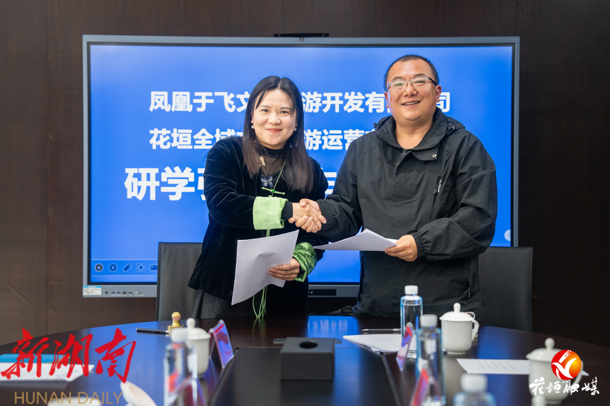 湖南日报·新湖南客户端12月8日讯(通讯员 石璇)为深化湘西文旅融合与研学教育创新,12月8日,凤凰旅投集团旗下于飞文化旅游开发有限公司与边城文旅投旗下花垣全域文化旅游运营有限公司在花垣县十八洞乡村振兴学院举行研学引流合作签约仪式。双方就研学课程开发、资源整合、市场协同等核心议题进行深入交流,并正式签署战略合作协议。