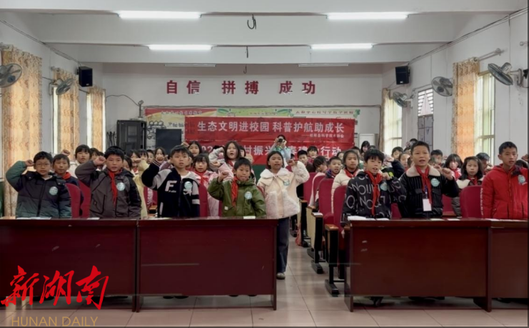 新桂阳12月8日讯(通讯员 杨兰 李琳 肖桢茹)12月5日,由共青团湖南省委、湖南财信金控集团主办的“守护好一江碧水”系列线下环保公益活动在桂阳县委组织部、桂阳县科学技术协会及共青团桂阳县委的联合指导下,依托太和镇人民政府的全力支持,桂阳县“桂在行动”选调生科普宣讲团走进太和镇中心学校,以“‘青’赴绿意,大美湖湘”为主题开展青少年生态文明宣讲活动。这场别开生面的宣讲,为50余名学子带来了一堂兼具知识性与趣味性的生态科普课程。
