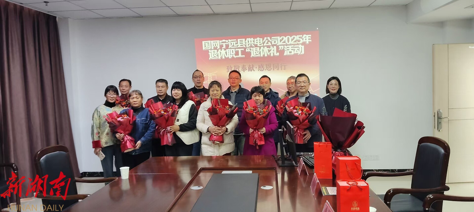 湖南日报·新湖南客户端12月9日讯(通讯员 张琼) 12月8日,国网宁远县供电公司开展“致敬奉献·感恩同行”退休礼温情活动,为12名退休职工数十年电力职业生涯画上圆满句号。