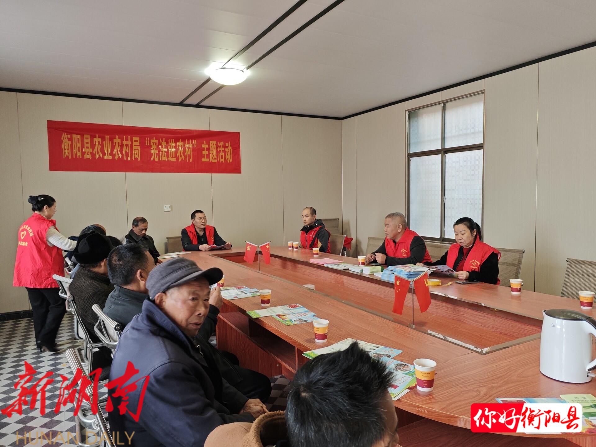 衡阳县融媒12月9日讯(记者:李洁霞 通讯员:易敏 刘晋强 ) 近日,县农业农村局走进西渡镇黄林村开展 2025 年宪法进农村主题活动,让宪法意识扎根乡土、融入农事,为乡村振兴注入强劲法治力量。