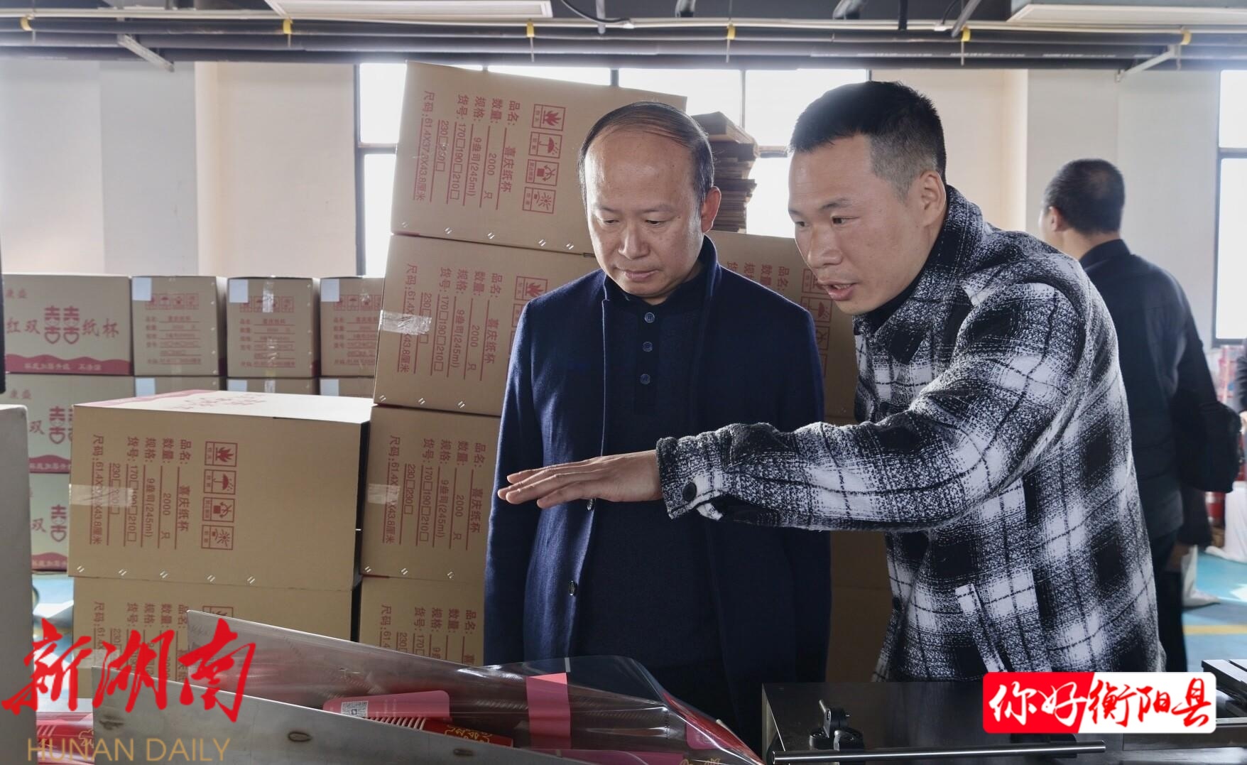 在板市乡,孙浩来到衡阳智宇光电科技有限公司生产车间,实地察看光纤线、数据线等产品的生产流程与工艺细节,详细了解企业生产经营、订单模式及带动就业等情况。得知公司累计申请专利近10项、年销售额超1亿元,孙浩充分肯定企业良好的发展态势,并勉励企业再接再厉,持续加大研发投入、提升自主创新能力,进一步增强产品核心竞争力。随后,孙浩走进衡阳市鸿康纸塑容器包装有限公司,参观该公司采用国内先进设备打造的食品级环保餐饮具生产线,对企业凭借技术创新获评“国家高新技术企业”表示赞赏,鼓励企业继续坚持走绿色环保路线,加强技术攻关与产品创新,引领行业绿色升级新趋势。