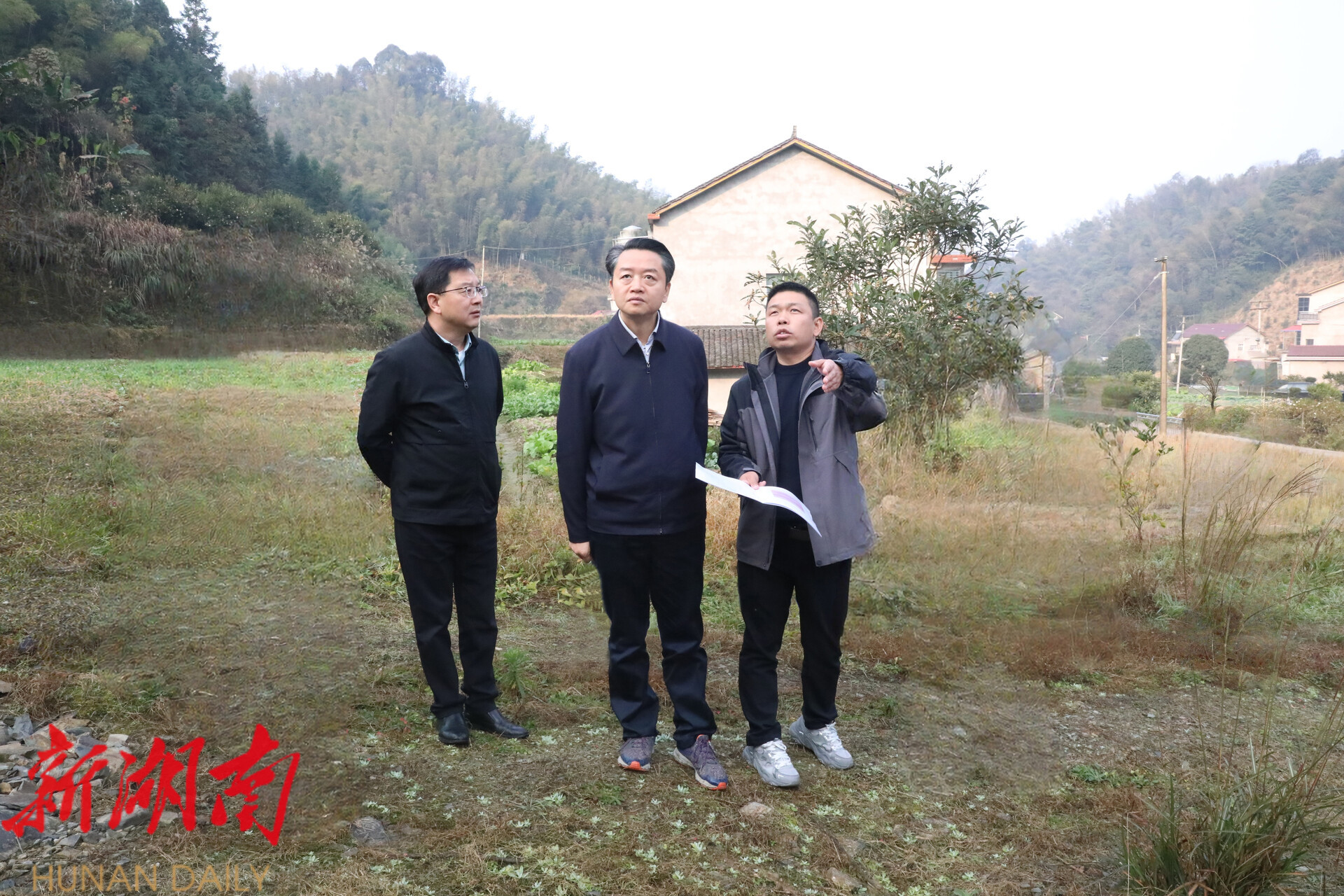 桃源融媒12月9日讯(记者:张铭齐 彭伟桐 何阳 ) 12月9日上午,市委常委、县委书记黄伟雄带队深入沙坪镇新跃村,专题调研金矿规划编制和探矿权设置推进工作。他强调,深入贯彻落实习近平生态文明思想和习近平总书记关于自然资源工作重要论述,坚持规划引领、生态优先、依法合规、绿色开采,高标准推进矿产资源勘查开发,将资源优势转化为经济优势、发展优势。