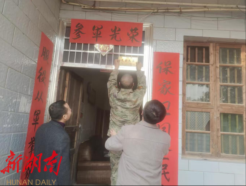 新桂阳12月10日讯(通讯员 周道群 郭武军 )近日,敖泉镇组织镇武装部,退役军人服务站及村(居)委会工作人员组成慰问组,带着对军人军属的崇高敬意,开展"光荣之家"牌匾上门悬挂活动,为2025年新入伍青年家庭送去这份特殊的荣誉与关怀,让"一人参军,全家光荣"的理念在全镇落地生根。