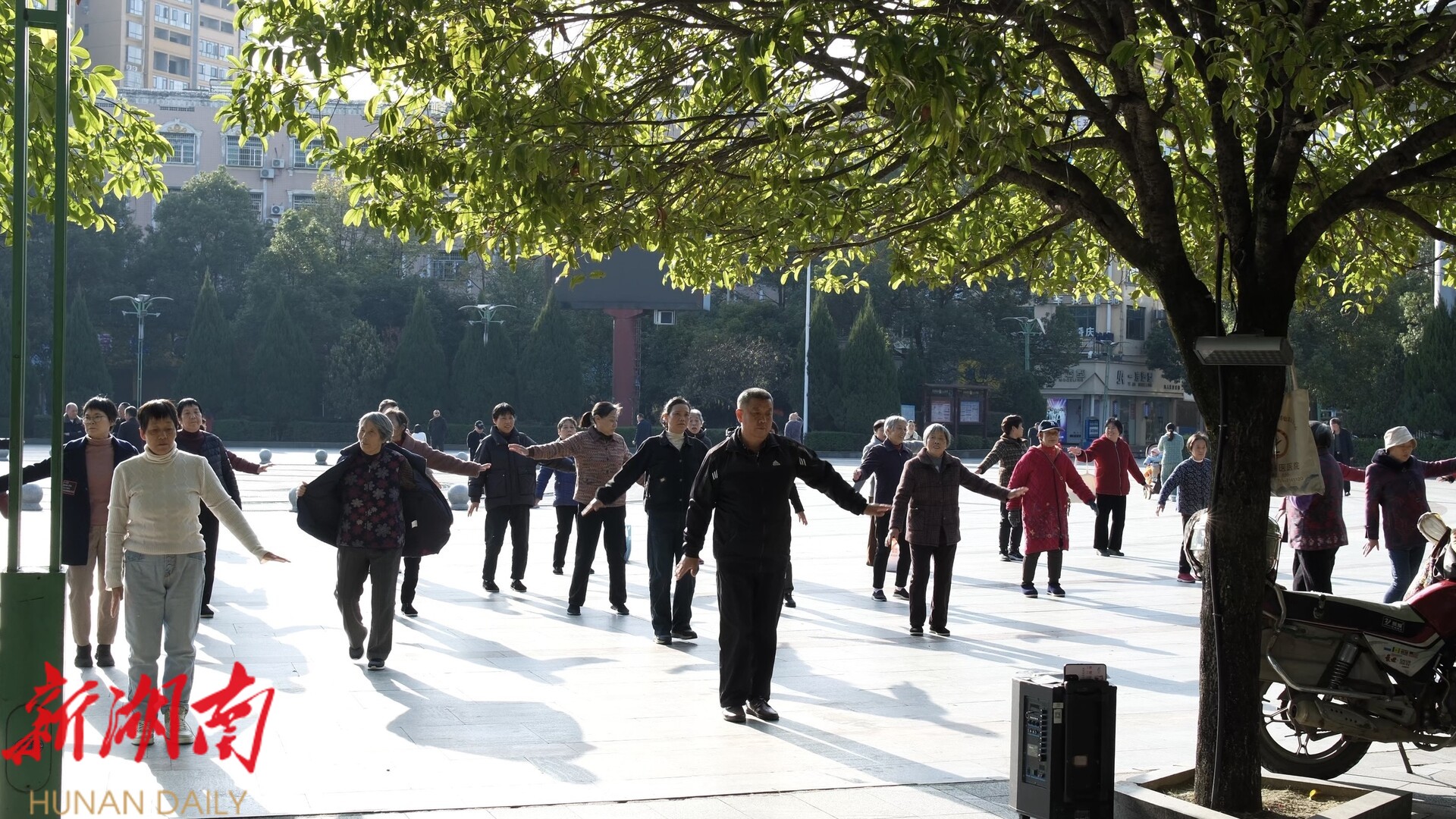 12月10日,记者在县城雪峰广场看到,清晨的场地早已热闹非凡,不同年龄段的市民齐聚于此,冬日清冷被满满活力驱散。健步走爱好者身着保暖运动装,迈着稳健步伐穿梭其间;太极拳爱好者凝神静气,在舒缓旋律中舒展肢体,尽显从容雅致;健身操、广场舞队伍整齐列队,活力感染着过往行人;健身器材区域,中老年人认真开展拉伸、屈伸练习,夯实身体根基;孩童们在广场开阔处做操、玩闹,清脆笑声回荡全场。各年龄段人群以多样方式开展锻炼,用运动开启充实又有活力的一天。
