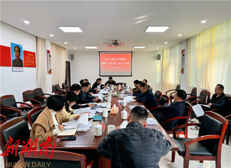 湖南日报·新湖南客户端12月10日讯(通讯员 周昱君) 12月9日,县人大常委会党组书记、主任周峰主持召开县十八届人大常委会第四十八次主任(扩大)会议,党组副书记、副主任王卫兵,副主任彭碧芳、胡秉阳、吴承棉出席。