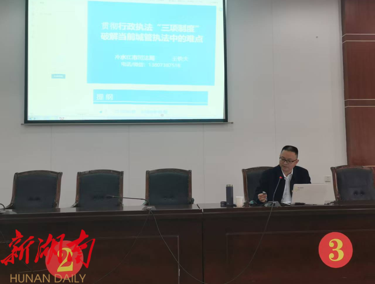 湖南日报·新湖南客户端12月10日讯(通讯员 李鑫)12月4日上午,冷水江市城管局组织召开全局系统涉企行政执法培训会议,市城管大队全体具备执法资格的队员参加培训。