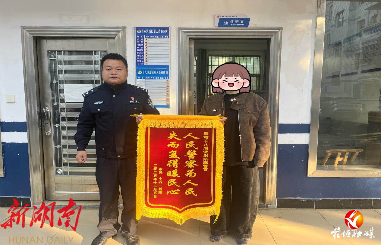 “本以为手机找不回来了,没想到民警这么快就帮我找回,太感谢你们了!”12月8日,辖区居民石女士手持一面印着“人民警察为人民,失而复得暖人心”的锦旗来到花垣县公安局十八洞派出所,紧紧握住民警的手反复表达谢意。