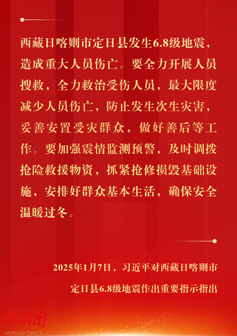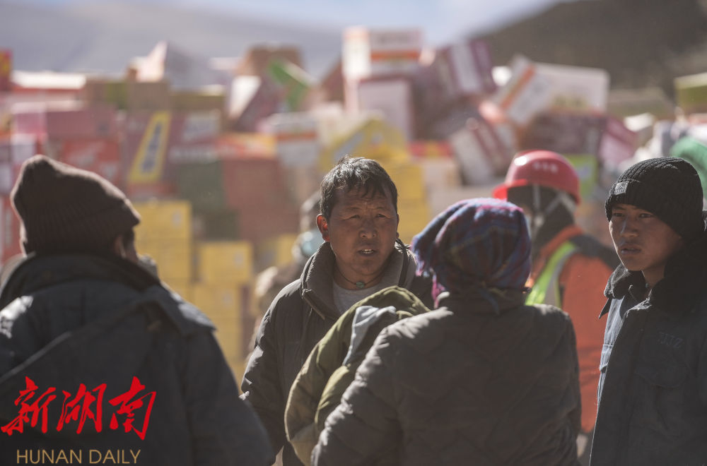 2025年1月10日,定日县长所乡古荣村党支部书记次仁平措(中)协助群众搬进板房。