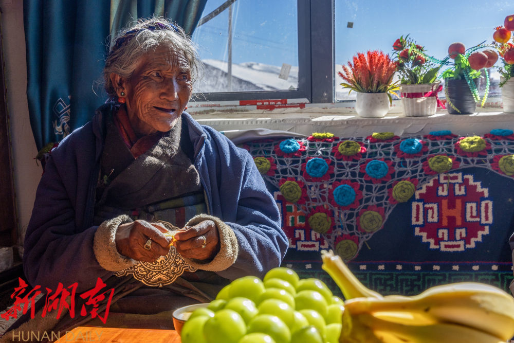 2025年11月13日,定日县盆吉乡恰巴村74岁老人益西桑姆坐在自家的新房中。她的家位于海拔5300米处,是此次灾后重建中海拔最高的工区。
