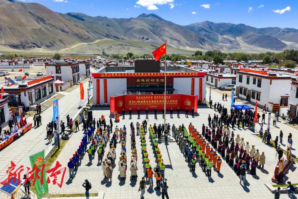 2025年8月15日,定日县长所乡森嘎村举行“定日6.8级地震灾后恢复重建民房首批入住仪式”(无人机照片)。