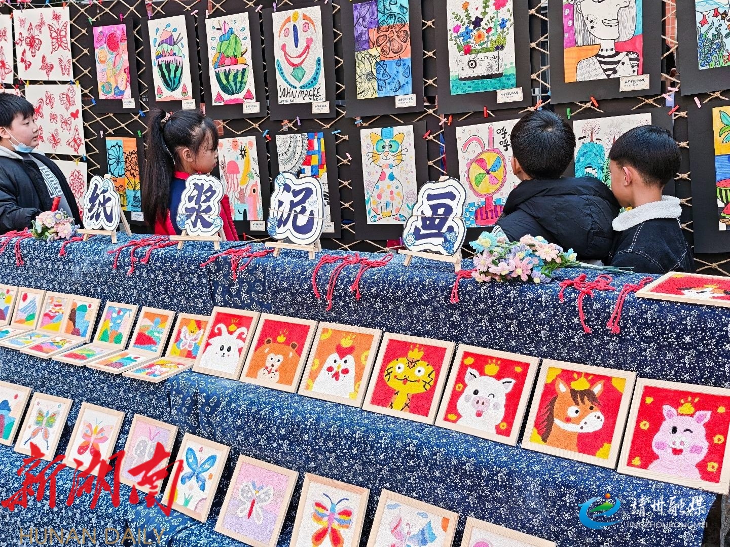 活动现场, 参展作品形式多样、内容丰富,涵盖绘画、书法、手工等多个 类别,每一幅作品都 凝聚学生创意与热情,既展现校园景致、非遗韵味,也抒发对生活的热爱,彰显学子扎实的艺术功底与积极风貌。