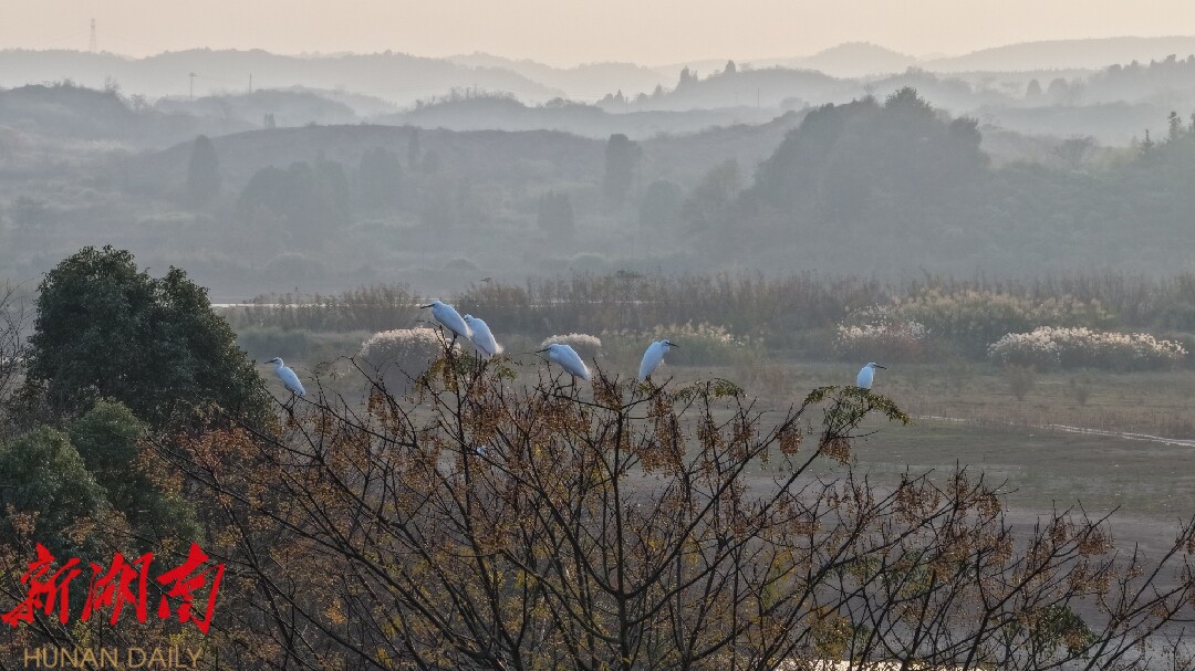 傍晚时分,江面开阔处往往出现“半江瑟瑟半江红”的诗意景象。远处青山如黛,近处白鹭时而云集翩飞,时而静立树梢,呈现出“静看青山相对坐,白鸟悠悠下舂陵”壮丽景观,令人流连忘返。