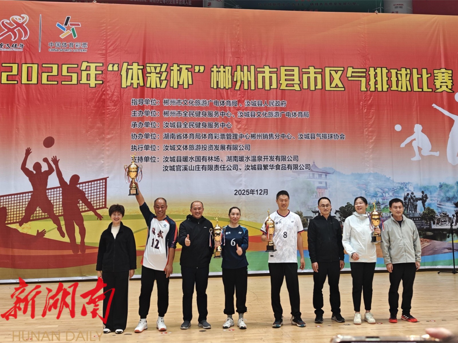 龙源临武客户端12月11日讯(通讯员 李慧君)12月7日,2025年“体彩杯”郴州市县市区气排球赛在汝城县圆满落幕。临武县派出的三支代表队团结拼搏,最终斩获佳绩:临武男中队勇夺冠军,临武女青队喜获亚军,临武女中队取得第五名。