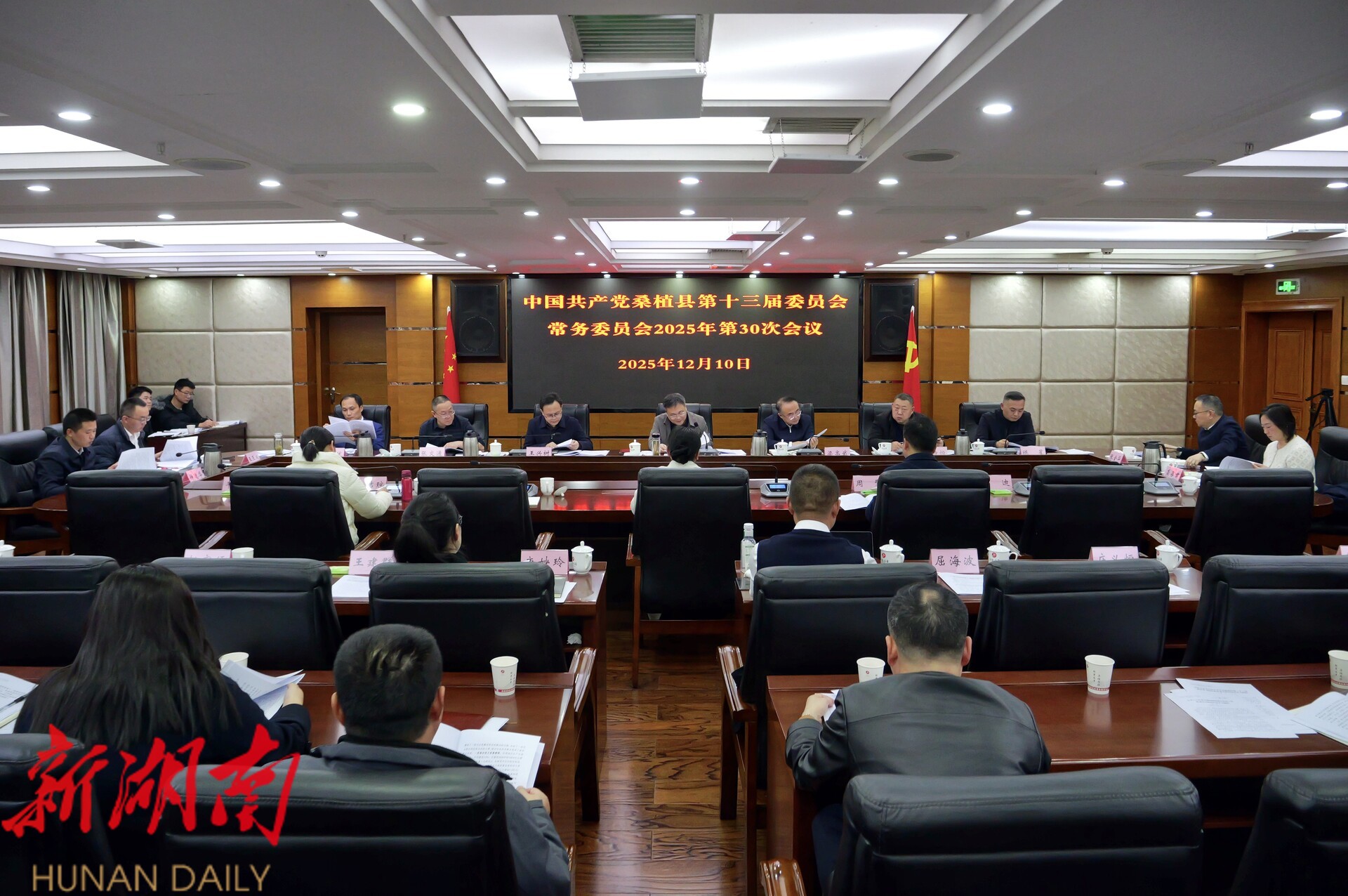 湖南日报·新湖南客户端12月11日讯(通讯员 杨柳)12月10日,县委书记曹飞主持召开中国共产党桑植县第十三届委员会常务委员会2025年第30次会议,传达学习 习近平 总书记近期重要讲话精神和全省2026年双节期间烟花爆竹管控工作推进会议精神;审议相关文件;研究桑植县贯彻落实工作。
