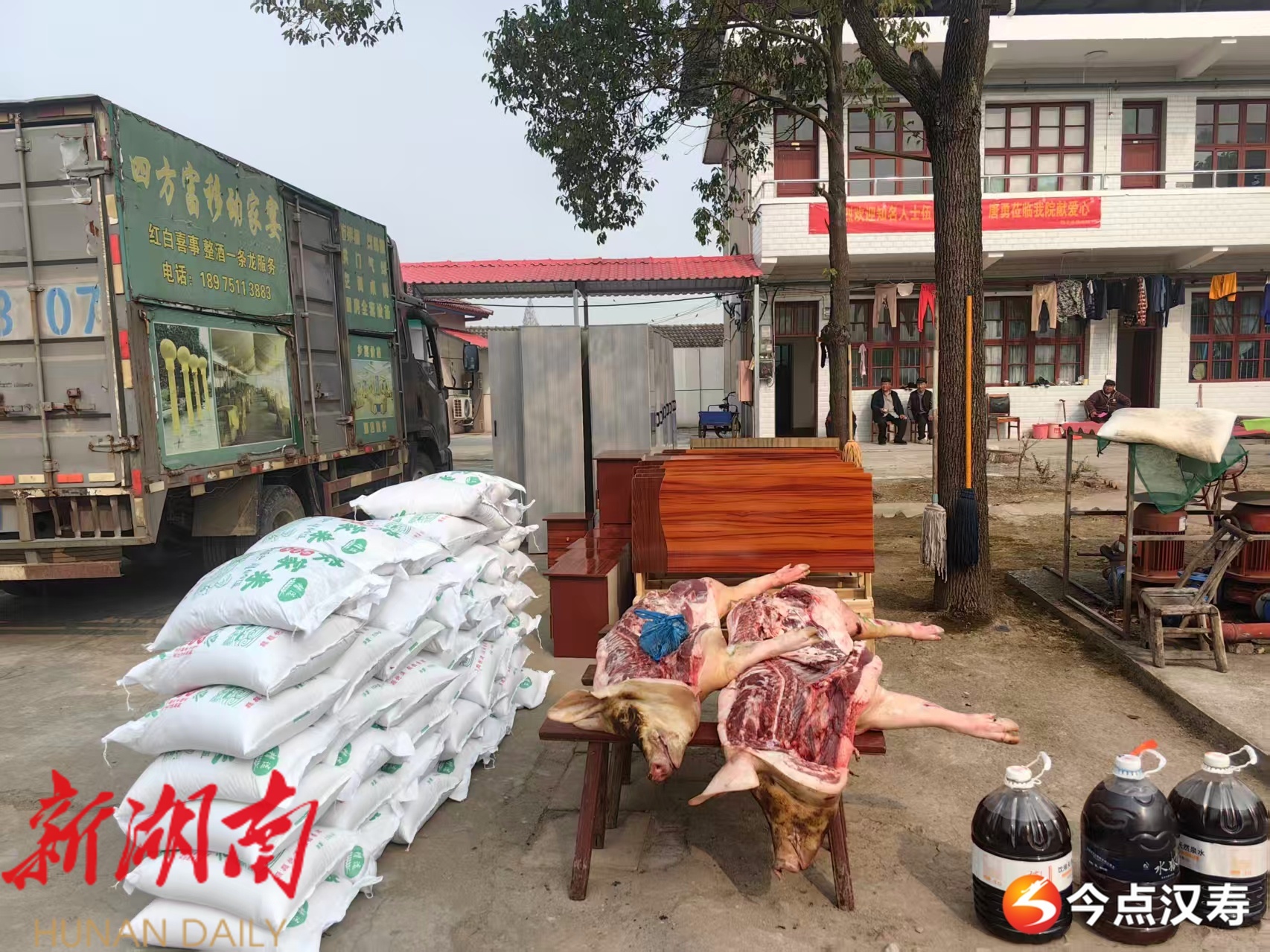 在捐赠现场,三位爱心人士带来的物资整齐摆放,包括10 套包含床头柜的床铺、10 套衣柜、50 袋大米、2 头生猪、45 升食用油。看着崭新的家具和充足的粮油肉品,敬老院的老人们脸上都露出了欣慰的笑容,纷纷向三位爱心人士表达感谢。