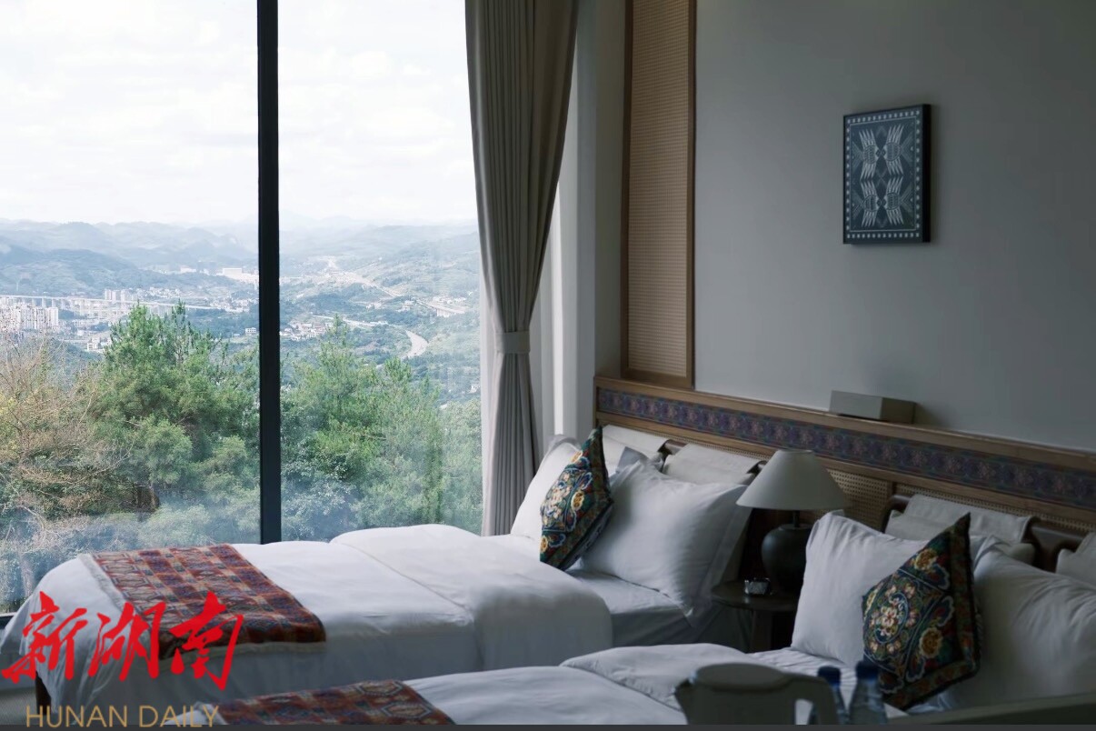 目前,栖山微舍已建成12间主题特色客房,开发了古丈毛尖茶宴、西兰卡普织造、采茶制茶研学等沉浸式体验项目,2024年接待游客3.2万人次,实现营收121.31万元,客单价达600元/人,是行业均值的2倍,用亮眼成绩印证了文旅融合的发展潜力。“我是通过朋友圈看到的栖山微舍,来体验之后总体感受非常好,并且我切实的看到和触摸到土家族的民族乐器咚咚喹,感受到土家族文化的魅力。”前来体验的客人很是满意,民宿的口碑愈发响亮,吸引着越来越多周边县市的游客慕名而来。