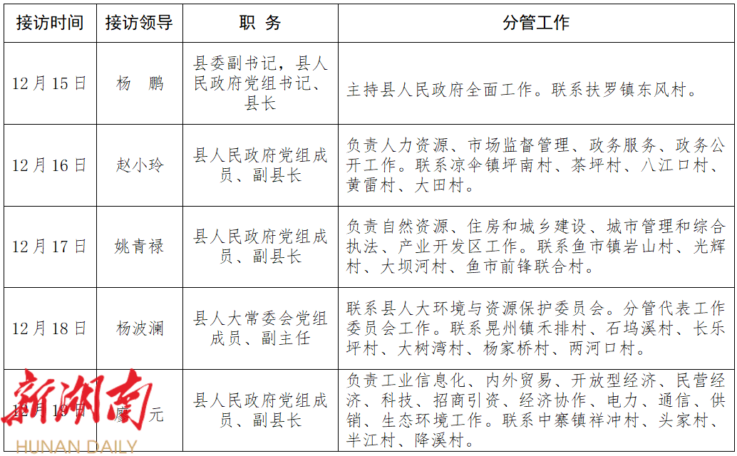 为进一步畅通信访渠道,方便群众依法及时就地反映、解决问题,现将2025年12月第三周新晃侗族自治县县级领导干部公开接访安排公告如下。