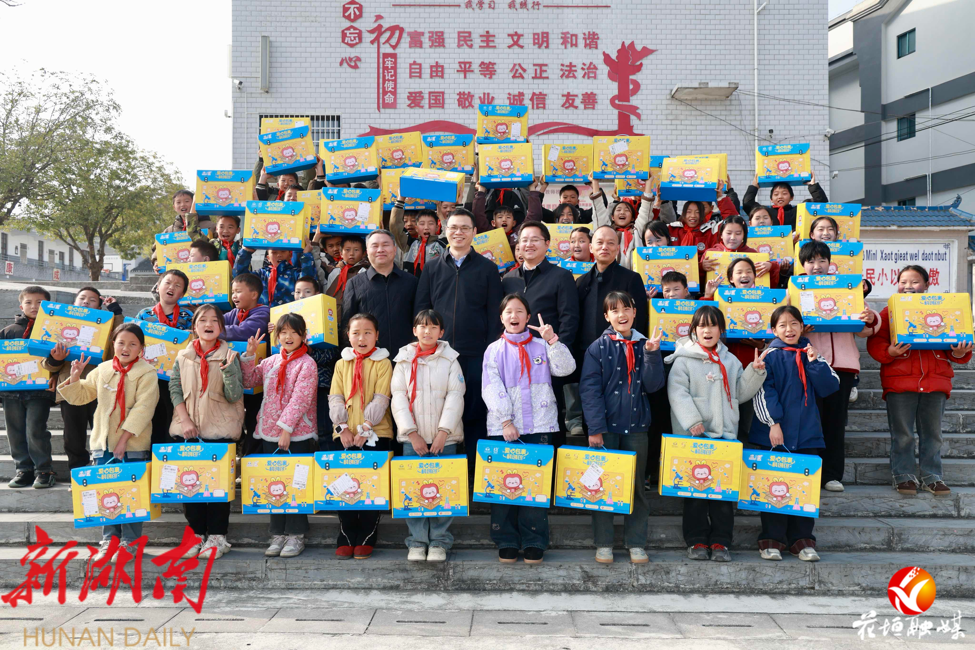 湖南日报·新湖南客户端12月12日讯(通讯员 邓雨露)12月11日,中国乡村发展基金会·科创包爱心包裹捐赠仪式在花垣县吉卫民族小学举行,555个满载关爱与科技梦想的科创包裹送到孩子们手中。