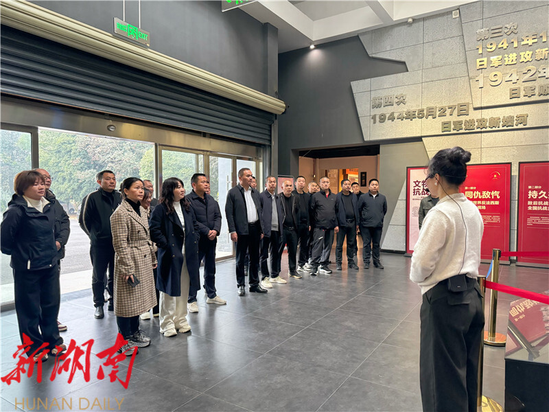 在新墙河抗战史实陈列馆,大家在讲解员引导下,有序参观馆内史料展品,通过珍贵图片、实物文物与文字记载,重温抗战岁月的民族苦难与抗争历程,感悟革命先辈的家国情怀。