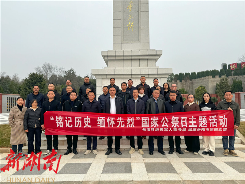 湖南日报·新湖南客户端12月12日讯(通讯员 周昱君 龚若枫) 12月12日,在第十二个南京大屠杀死难者国家公祭日来临之际,县退役军人事务局联合民革岳阳市第四支部,组织39名党员干部、退役军人代表,赴新墙河抗战史实陈列馆与县烈士陵园开展南京大屠杀死难者国家公祭日纪念活动,深切缅怀遇难同胞与革命先烈,传承爱国主义精神。