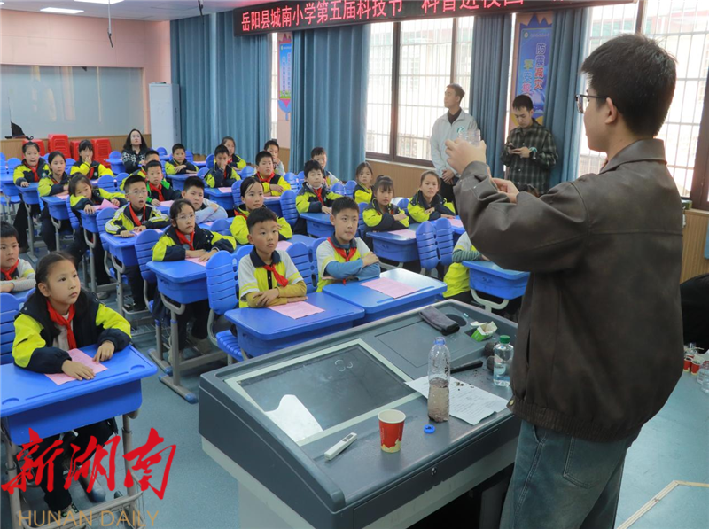 湖南日报·新湖南客户端12月12日讯(通讯员 王逸轩 毛辰亦) 12月11日,岳阳县2025届选调生“青赴巴陵”宣讲团走进城南小学,以“青赴绿意,大美湖湘”为主题,通过趣味实验、互动宣讲、手工制作等形式,引导学生树立守护一江碧水的责任意识。